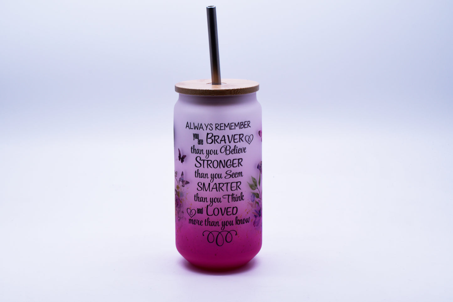 The always remember you are braver 16 oz libbey glass can tumbler is a beautiful and motivational design